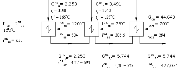 GОБДР = 5,744 кг/с. GОБП = 3,491 кг/с. iосв= 294 кДж/кг. iОДДР = 427,071 кДж/кг. tОДДР = 101,7C.