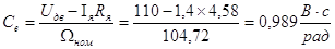 Естественная характеристика отличается наибольшим углом наклона к оси скоростей и наибольшим пусковым моментом. Если Rдоб≠0, двигатель будет работать на искусственной механической характеристике. Конструктивная постоянная Се может быть вычислена на основе номинальных паспортных данных: