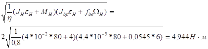 Выбор исполнительного двигателя. Мощность двигателя выбираем из условия обеспечения заданного режима работы объекта управления. Исходными данными для выбора двигателя служат следующие параметры нагрузки: момент трения Мн, момент инерции Jн, угловая скорость Ωн и угловое ускорение Сн. Выбор двигателя начнем с ориентировочного определения необходимой мощности на его валу, для чего можно воспользоваться формулой: