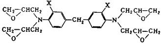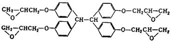 1,3-хлоргидриновых групп При взаимодействии дифенилпропана с эпихлоргидрином образуется полимер с прямой цепью, характеризующийся двумя функциональными группами- эпоксидной и гидроксильной. Строение неотверждённых ароматических эпоксидиановых смол может быть выражено следующей формулой :
