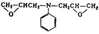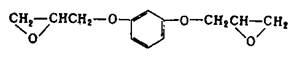 При синтезе низкомолекулярных диановых эпоксидных смол ( мол. масса 350-450) обычно раствор дифенилолпропана (1 моль) в эпихлоргидрине (8-10 моль) нагревают до кипения и постепенно (5-8 часов) добавляют к нему 40%-ный водный раствор NaOH (2,2 моль). При этом непрерывно отгоняют воду в виде азеотропной смеси с эпихлоргидрином, который после отделения воды возвращают в реактор. После окончания процесса непрореагированный эпихлоргидрин отгоняют под вакуумом, эпоксидиановую смолу растворяют в толуоле, толуольный раствор промывают водой для удаления NaCl. Затем толуол отгоняют, сначала при атмосферном давлении, потом под вакуумом при температуре до 140-150 оС. Смолы с молекулярной массой 500-1000 получают аналогичным способом, но при молярном соотношении дифенилолпропан : эпихлоргидрин, равном 1: (1,5-1,9), причём процесс ведут в среде растворителя (ксиол, толуол, их смеси с бутиловым спиртом или циклогексаном). Смолы с молекулярной массой 1000-3500 синтезируют взаимодействием низкомолекулярной эпоксидиановой смолы с дифенилолпропаном в расплаве при 140-210 оС (катализаторы- третичные амины, мочевина, Na2CO3) или дифенилпропана с эпихлоргидрином в присутствии щёлочи в гетерогенных условиях в системах вода – органический растворитель (обычно изопропанол или бутанол) при 70-80 оС. Во втором случае в меньшей степени протекают побочные реакции, получаемые эпоксидиановые смолы имеют более узкое молекулярно-массовое распределение, сравнительно узкий интервал эпоксидных чисел, отличаются более светлым цветом. Из других эпоксидных смол, содержащих в молекуле глицидиловые группы, наибольшее практическое применение получили глицидиловые производные феноло-формальдегидных новолачных смол(II) (здесь и далее римскими цифрами указана нумерация эпоксидных смол в таблице 2), продуктов конденсации фенола с акролеином (III) и глиоксалем (IV), галогенированного дифенилолпропана (V), ароматических моноаминов (VI) и диаминов (VII), аминофенолов (VIII), циануровой кислоты (IX), резорцина (X), гликолей (XI). Промышленное значение получили также олигомерные диглицидилуретаны - продукты взаимодействия глицидола с олигомерными диизоцианатами, полученными на основе олигодиенидилов молекулярной массой 2000-4000, простых или сложных полиэфиров молекулярной массой 1000-2000. Эпоксидиановые смолы, содержащие эпоксидные группы в алифатических циклах или цепях, получают эпоксидированием (обычно надуксусной кислотой) двойных связей ненасыщенных соединений; практическое значение имеют диэпоксиды гексагидробензаль- 1,1-бис- (оксиметил) циклогексана (XIII), тетрагидробензилового эфира тетрагидробензойной кислоты (XIV), дициклопентенилового эфира (XV), дициклопентадиена (XVI), винилциклогексана(XVII), эпоксидированные олигомеры дивинила. Таблица 2 Эпоксидные смолы [2].