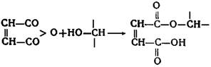 Вновь образовавшаяся гидроксильная группа взаимодействует с молекулой ангидрида и т. д. В результате таких реакций образуется твердая смола трехмерной структуры. Недавно было найдено, что смола ЭД-5 при добавлении малеинового ангидрида до 35% полностью отверждается при 100° за 60 часов, все эпоксидные группы и весь малеиновый ангидрид вступают в реакцию (по инфракрасным спектрам). При более низких температурах даже за 200—300 час. не наблюдается полного исчезновения эпоксидных групп и малеинового ангидрида. В пределах 50—100° не наблюдается взаимодействия гидроксильной и эпоксидной групп смолы по схеме: