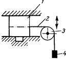 Рис. 15. Схема измерения динамической прочности связи единичной нити корда с резиной при многократном сжатии образца: 1— резина; 2—кордная нить; -3 — направляющий ролик; 4 -груз (1-2кГ). Известны методы определения прочности связи единичной нити корда с резиной в динамических условиях. В этих случаях удается нагружать не только образец в целом, но и отдельную нить и точно задавать основные параметры режима. Описан, например, метод многократных деформаций изгиба на роликах резиновой пластины с завулканизованными в нее нитями корда. После утомления измеряли прочность связи выдергиванием нити (по типу Н-метода). Широкое распространение получил метод многократного изгиба цилиндрического образца, по оси которого проходит кордная нить, выдергиваемая после утомления. Аналогичный метод испытания применяется и у нас: цилиндрические образцы с кордной нитью по диаметру среднего сечения подвергаются многократному сжатию до отслоения и выдергивания нити (рис.15). Динамическое разнашивание резины не наблюдается в гантелевидных образцах, укрепляемых в специальных держателях, так как в этих случаях образцы подвергаются знакопеременным деформациям растяжения — сжатия. 3.3. Характер разрушения адгезионных соединений Любая система адгезив — субстрат характеризуется не только величиной адгезии, но и типом нарушения связи между компонентами, т. е. характером разрушения. Вопрос о характере разрушения имеет не только теоретический, но и большой практический интерес. Только зная слабые звенья системы, можно искать пути повышения ее работоспособности. Общепринятым является следующая классификация видов разрушений: адгезионное (адгезив целиком отделяется от субстрата), когезионное (разрыв происходит по массиву адгезива или субстрата), смешанное (происходит частичное отделение адгезива от субстрата, частичное разрушение субстрата и частичное разрушение адгезива). Все перечисленные виды разрушений схематически представлены на рис.16.