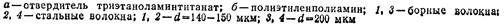 РИС.18. Зависимость адгезионной прочности в соединениях с эпоксидными связующими на основе олигомера ЭД-20 с борным и стальным волокнами при различного диаметра и отвердителях:
