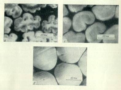 Рис. 24. Поперечные срезы волокон: а- вискозное, б- высокопрочное вискозное, в- капрон |