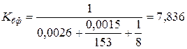 b=3,4 коэффициент оребрен. dвн=15,4 мм внутренний диаметр трубы dнар=0,0019 м наружный диаметр трубы lтр=1550 мм длина одной трубы n=284 количество труб lобщ=440 м общая длина труб. |