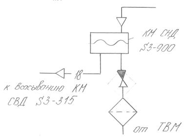 Чтобы исключить кратковременную работу компрессора с блокированной защитой по расходу масла и избежать нежелательного повышения промежуточного давления нажатием кнопки S1 можно сначала остановить КМ СНД, а затем КМ СВД. При этом переключается триггер Д11 в управляющем устройстве КМ СНД.
