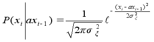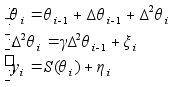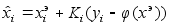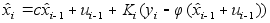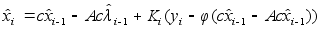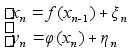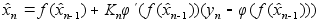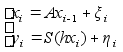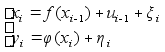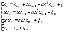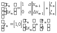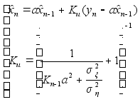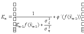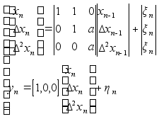 А - матрица 3ґ3, такая, что получается модель (2). Используя модель (4) видим, что верхнее уравнение линей- ное, а нижнее уравнение нелинейное. Используя теорию не- линеной фильтрации получим оценку :