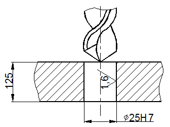 При рассверливании отверстий подача, рекомендуемая для сверления, может быть увеличена в 2 раза. Порядок назначения остальных элементов режима резания аналогичен назначению режимов резания при токарной обработке. Средние значения припусков на диаметр, снимаемых зенкерами и развертками см. в приложении 4. Пример решения задачиНа вертикально-сверлильном станке 2Н125 обработать сквозное отверстие диаметром 25Н7 (Ra=1,6 мкм), l=125 мм. Материал заготовки СЧ18, НВ210. Необходимо: выбрать режущий инструмент, назначить режим резания по таблицам нормативов, определить основное время. Решение: