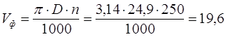 По паспорту станка выбираем n=250 об/мин. Тогда фактическая скорость резания