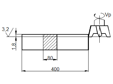 Эскиз обработки Рис.5 1. Выбор шлифовального круга. Для круглого наружного шлифования с продольной подачей (шлифовать с радиальной подачей нельзя из-за большой длины шлифуемой поверхности), параметра шероховатости Ra=0,4 мкм, конструкционной закаленной стали до HRC45 принимаем шлифовальный круг формы ПП, [2], характеристика – 24 А401К, [6], индекс зернистости – Н, [2], структура – 5, [6], класс – А, [2], Полная маркировка круга ПП24 А40НС15КА 35 м/с. Размеры шлифовального круга Dk=600 мм; Вк=63 мм (по паспорту станка). 2. Режим резания 2.1 Скорость шлифовального круга Vk =35 м/с [2]. Частота вращения шпинделя шлифовальной бабки