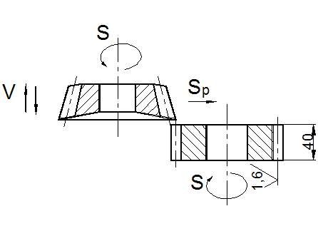 где nз – частота вращения заготовки, об/мин; Sp – радиальная подача, мм/об. При круглом шлифовании