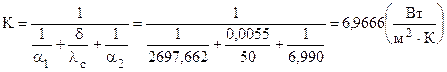 Коэффициент теплопередачи K для плоской стенки:
