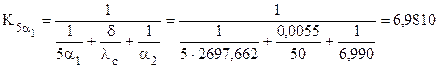 теплообменом пренебречь из-за малых значений 2. Провести расчетное исследование вариантов интенсификации теплопередачи при неизменной разности температур между горячим и холодным теплоносителями. 2.1. Определить коэффициент теплопередачи при: а) увеличении в 5, 10, 15 раз коэффициентов теплопередачи α1,