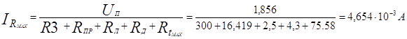 находим Uп при Rt = R И после этого находим соответствующее значение тока в цепи включения реохорда: Сравниваем это значение тока с предельно допустимым значением Imax: Неравенство
