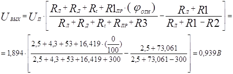 его отношение к значению тока при Rt = R и сравниваем это отношение с предельно допустимым значением (первое должно быть больше), равным 0,8..0,9. в рассматриваемом случае условие выполняется, поэтому можно полученные расчетные значения считать найденными. 4. ГРАДУИРОВОЧНАЯ ХАРАКТЕРИСТИКА ШКАЛЫ ИЗМЕРИТЕЛЬНОГО ПРИБОРА Проверяем градуировку шкалы, например при 0, 20, 40, 60, 80, 100 градусах. Для этого рассчитываются значения Uвых при указанных значениях температуры по формуле: