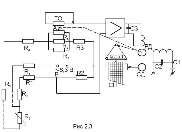 рис. 2.3 дана принципиальная схема автоматического уравновешенного моста. В измерительную