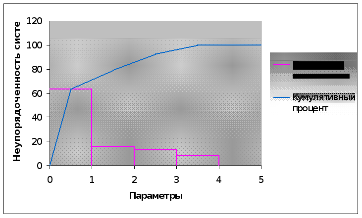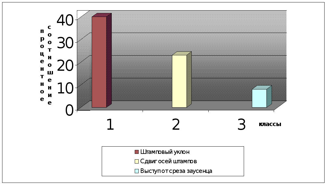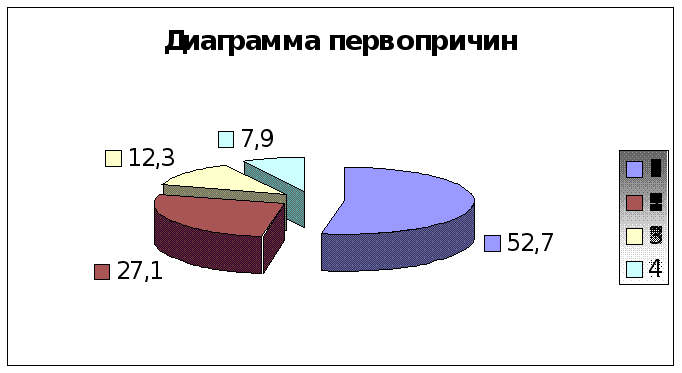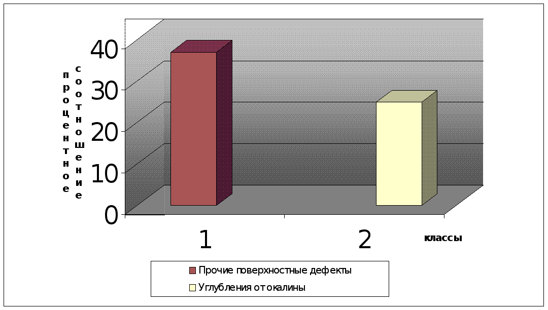 В данном случае диаграмма Парето отражает причины проблем, возникающих в ходе производства, и используется для выявления главной из них –наличия поверхностных дефектов. Рассмотрим степень влияния каждой первопричины на качество закидки при использовании в качестве заготовки круглого проката 09Г2Д-12. В результате ранжирования получаем следующие данные: