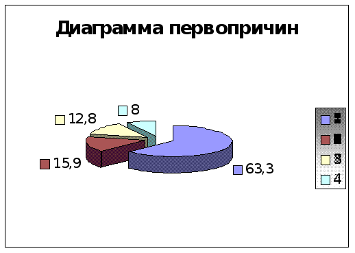Диаграмма Парето по причинам возникновения брака готовой продукции при использовании круглого проката.