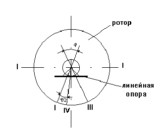 Грубая балансировка выполняется с целью устранения явной неуравновешенности ротора без учета сил сопротивления, препятствующих колебанию в опорах. Грубая балансировка производится следующим образом. Ротор помещают на стенд так, чтобы его ось располагалась горизонтально и перпендикулярно призматическим опорам. Желательно чтобы ротор был одет на собственный рабочий вал. В случае невозможности выполнения этого требования ротор крепится на специально изготовленную оправку. Если вал ротора имеет разные диаметры опорных шеек, то на меньшую из них вытачивают выравнивающую втулку. В исходном состоянии ротор располагают в опорах призмы. Под действием статического момента ротор будет передавать момент на измерительную рамку. В том случае если ротор, помещенный на балансировочное устройство, не создает начального момента, его необходимо повернуть (в любую сторону) на 900. Если бы отсутствовали силы сопротивления, припятствующие качению рамки в опорах, то его сещенный центр тяжести располагался бы в самой нижней точки траектории движения, т.е. в нижней части вертикали, пересекающейся с осью вращения. В реальных условиях центр тяжести ротора будет находиться вблизи точки равновесия. Для установления положения смещенного центра тяжести на торцевой поверхности ротора, после того как он займет нулевой момент, наносится меловая черта 1 рис. 3.1, которая должна совпадать с вертикальной