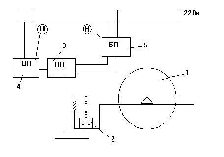 Рис.5.2 Схема стенда для статической балансировки роторов. 1 — стенд для статической балансировки; 2 — тензопреобразователь; 3 — первичный преобразователь; 4 — вторичный прибор; 5 — блок питания. 5.2. Освещение Освещение должно осуществляться искусственным и естественным путем [ ]. Естественное освещение осуществляется через четыре окна в стене. Искусственное освещение предназначено для освещения рабочих мест в темное время суток или при недостаточном естественном освещении. Оно создается дополнительными источниками света. Помещение по задачам зрительной работы относится к I группе. Световой поток необходимый для работы в лаборатории F = ЕН Ч S Ч k Ч z / h = 300 Ч 60 Ч 1,2 Ч 1,3 / 0,65 = 43200 лм, где : S = 60 м2 - площадь помещения ЕН = 300 лк - нормируемая освещенность k = 1,3 - коэффициент запаса z = 1,2 - коэффициент неравномерности освещения h = 0,65 - коэффициент использования светового потока расстояние от потолка до рабочей поверхности НО = Н — hp = 3,5 — 1 = 2,5 м; где : Н - высота потолка; hp - высота столов; Расстояние от потолка до светильников hc = 0,2 HO = 0,2 Ч 2,5 = 0,5 м; Высота подвеса над рабочей поверхностью Нр = НО — hc = 2,5 — 0,5 = 2 м; Расстояние между светильниками a = 1,5 Ч Нр = 1,5 Ч 2 = 3 м; Количество светильников n = A Ч B / a2 = 6 Ч 10 / 32 = 7 принимаем n = 8 Подбираем по табл. 2.8. [ ] лампы люминесцентные общего назначения ЛБЖ 110 исходя из требуемого светового потока 5400 лм световой поток, лм 5600 напряжение на лампе, В 90 мощность, Вт 110 ток лампы, А 3,5 средняя продолжительность горения, ч 5000 По табл. 2.1. [ ] выбираем тип светильника ЛСП 02 — 2 х 80 / Д20 5.3. Отопление В лаборатории предусматривается водяное отопление с радиаторами и конвекторами при температуре теплоносителя 80ОС (однотрубная схема отопительных трубопроводов) 5.4. Пожарная безопасность В рассматриваемой лаборатории имеются источники возникновения пожара. В основном это электрооборудование, поэтому при возникновении загорания для предотвращения распространения огня и тушения его предусмотрены следующие первичные средства пожаротушения: — огнетушители ОУ — 5 1 шт. ОП — 5 1 шт. — ящик с песком вместимостью 0,5 м3 и лопата [ ] 5.5. Техника безопасности — к работе в лаборатории допускаются лица прошедшие инструктаж по технике безопасности и сдавшие зачет преподавателю. — работа разрешается при наличии халатов на студентах и лаборантах. — при проведении лабораторных работ следует соблюдать правила электробезопасности [ ] при работе с электрооборудованием (электродвигатели, контрольно-измерительные приборы). Каждая установка должна иметь заземление, все токоведущие части должны иметь надежную изоляцию. — все движущиеся части установки находятся внутри аппарата, поэтому запрещается включать питание установки со снятыми крышками аппарата. — Запрещается: 1. самостоятельно делать какие-либо переключения в системе электрообеспечения. 2. покидать включенную установку при отсутствии лаборанта или преподавателя. 3. самостоятельно проводить работы на установке. 7. Автоматизация балансировочного процесса. Технико-экономические расчеты показывают целесообразность автоматизации балансировочных операций. Кроме экономической эффективности автоматизация дает возможность с успехом разрешить ряд организационных задач. Балансировочная операция характеризуется тем, что контроль её качества осуществляется на том же оборудовании, что и сама опер
