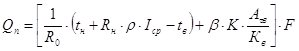 R0 – сопротивление теплопередачи покрытия, м2*К/Вт; tн – среднемесячная температура наружного воздуха за июль, °С; Rн – термическое сопротивление при теплообмене между наружным воздухом и внешней поверхностью покрытия, м2*к/Вт; r - коэффициент поглощения солнечной радиации материалом наружной поверхности покрытия; Iср – среднесуточная (прямая и рассеянная) суммарная солнечная радиация, попадающая на горизонтальную поверхность, Вт/м2; tв – температура воздуха, удаляемого из помещения, °С; b – коэффициент для определения гармонически изменяющихся величин теплового потока принимаем в зависимости от максимального часа теплопоступлений; К – коэффициент, зависящий от конструкции покрытия; Аtв – амплитуда колебаний температуры внутренней поверхности ограждающих конструкций, °С Rв – термическое сопротивление при теплообмене между внутренней поверхностью покрытия и воздухом помещения, м2*К/Вт; F – площадь покрытия, м2. Из задания R0=0,96 м2*К/Вт По табл. 1.5 [5] tн=18,1 °С Rн определяется по формуле: