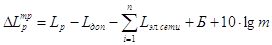 2. Рассчитываем фактический уровень шума в расчетной точке по формуле:
