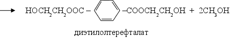 Диэтилолтерефталат подвергается поликонденсации в вакууме (остаточное давление 1-3 мм. рт. ст.) при 275-280oС в присутствии катализаторов (алкоголяты щелочных металлов, PbO и др.):