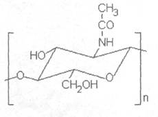 По химической структуре хитин близок к целлюлозе и только ей уступает по распространенности в природе. Хитин нерастворим в воде, разбавленных кислотах, щелочах, спиртах и других органических растворителях. Он растворим в концентрированных растворах соляной, серной и муравьиной кислот, а также в некоторых солевых растворах при нагревании, но при растворении он заметно деполимеризуется. В смеси диметилацетамида, N-метил-2-пирролидона и хлористого лития хитин растворяется без разрушения полимерной структуры. Хитин как неразветвленный полисахарид с β-(1-4)-гликозидными связями, образует фибриллярные структуры, для которых характерна линейная конформация молекул, закрепленная водородными связями. Подобные молекулы, располагаясь приблизительно параллельными пучками, образуют структуры, регулярные в трех измерениях, что характерно для кристаллов. Так, посредством рентгеноструктурного анализа показано, что молекулярные звенья хитина имеют конформацию 4C1 В зависимости от расположения полимерных молекул различают три формы структуры хитина - α, β и γ. α -хитин представляет собой плотно упакованный, наиболее кристаллический полимер, в котором цепочки располагаются антипараллельно, он характеризуется самым стабильным состоянием. В β -хитине цепочки располагаются параллельно друг другу, а в γ-хитине две цепочки полимера направлены "вверх" относительно одной, направленной "вниз". β и γ -хитины могут превращаться в α -хитин. В организмах насекомых и ракообразных, клетках грибов и диатомовых водорослей хитин в комплексе с минеральными веществами, белками и меланинами образует внешний скелет и внутренние опорные структуры. Потенциальные источники хитина многообразны и широко распространены в природе. Общая репродукция хитина в мировом океане оценивается 2,3 млрд. т. В год, что может обеспечить мировой потенциал производства 150-200 тыс. т. хитина в год. Наиболее доступным для промышленного освоения и масштабным источником получения хитина являются панцири промысловых ракообразных. Возможно также использование гладиуса кальмаров, сепиона каракатицы, биомассы мицелярных и высших грибов. Хитин-глюкановый комплекс. В клеточной стенке (КС) грибов хитин находится не в свободном состоянии, а связан ионными или водородными связями с полисахаридами, липидами, белками и микроэлементами, причем эти комплексы, например, хитин-глюкановый комплекс (ХГК) или в мукоране низших грибов, связанные с белком, являются более прочными и специфичными, чем природные белковые комлексы хитина в кутикуле беспозвоночных [1]. Хитин грибов находит пока ограниченное практическое использование по сравнению с хитином ракообразных. Последний давно уже применяется в разных областях хозяйственной деятельности человека, а в настоящее время наиболее интенсивно в технологии готовых лекарственных средств в качестве биологически активных веществ и вспомогательных материалов. Но именно в этой отрасли хитин грибов может стать активным конкурентом хитину Arthropoda. Объяснить этот факт можно следующими причинами. Во-первых, открытием ценных лекарственных свойств биополимеров клеточной стенки грибов, а именно структурных полисахаридов и белков. Особый интерес в этой области представляет японский гриб Lentinus edodes, содержащий в шляпке и ножке 4- и 5% хитина соответственно. 