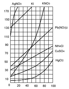 Растворимость: масса вещества (г) в 100 г воды при температурах |