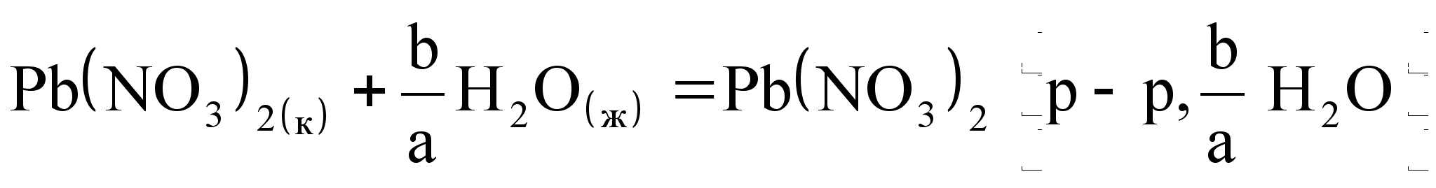 Изменение энтальпии при переходе твердого, жидкого или газообразного вещества в раствор называется теплотой или энтальпией растворения. Эндотермические реакции характеризуются положительным изменением энтальпии, а экзотермические – отрицательным. Энтальпией растворения называют изменение энтальпии при растворении 1 моль вещества в некотором количестве чистого растворителя. Процесс растворения в термохимии обычно выражают термохимическим уравнением, например процесс растворения a моль Pb(NO3)2 в b моль воды можно представить уравнением: