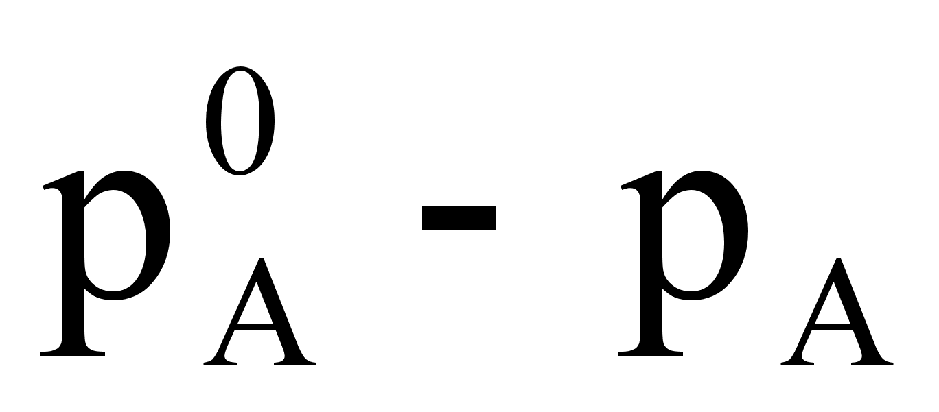 Давление насыщенного пара является весьма важным свойством растворов. С его величиной непосредственно связаны многие свойства растворов. Допустим, что к пару применимы законы идеальных газов. Воспользуемся упрощенной схемой испарения. Растворяя большое количество какого-либо вещества в данном растворителе, мы понижаем концентрацию молекул последнего в единице объема и уменьшаем этим число молекул, вылетающих в единицу времени из жидкой фазы в газообразную. В результате равновесие между жидкостью и паром устанавливается при меньшей концентрации раствора, т.е. при меньшем его давлении. Следовательно, давление насыщенного пара растворителя над раствором, должно быть всегда меньше, чем над чистым растворителем. При этом понижение давления пара будет, тем больше чем больше концентрация растворенного вещества в растворе. Из этого вытекает закон Генри, который можно выразить уравнением: