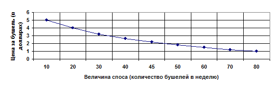 Разумеется, конкуренция предполагает намного большее число покупателей продукта на рынке. Поэтому, чтобы избежать длительного процесса суммирования, предположим, что на рынке имеется 200 покупателей кукурузы, и каждый из них решил приобрести одинаковое количество кукурузы по каждой из разных цен, как это сделал наш первоначальный потребитель. Таким образом, мы можем определить общий рыночный спрос путём умножения величин спроса, приведенных в табл. 3-1, на 200.Таблица 3-3 Рыночный спрос на кукурузу, 200 покупателей (в бушелях)