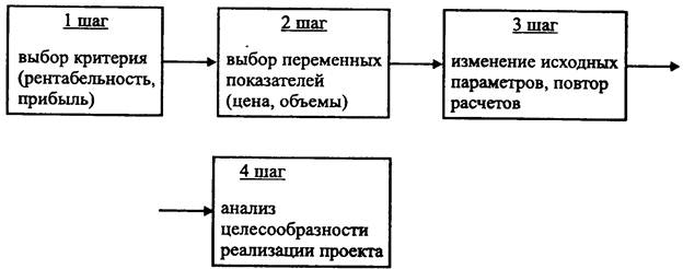 Рисунок 4.1. Анализ чувствительности проекта Таким образом, при высокой вероятности повышения цен на материальные ресурсы проект становится неэффективным. Использование вышеизложенных методов оценки инвестиционного проекта позволит достаточно объективно определить эффективность инвестиционной деятельности, избежать ошибок в выборе объектов вложения финансовых ресурсов. 5. Планирование, финансирование и кредитование капитальных вложений. Стратегическое планирование развития предприятий предусматривает обоснование необходимых капитальных вложений, или инвестиций, на осуществление предстоящих проектов. В состав капиталовложений входят денежные ресурсы, или инвестиционные средства, связанные с приобретением, содержанием и расширением основных производственных фондов, нематериальных активов, оборотных средств и других видов собственности предприятий и фирм. Основные фонды — это часть средств производства, которые многократно используются в хозяйственной деятельности, не изменяя свою первоначальную вещественно-натуральную форму Стоимость основных производственных фондов переносится на готовый продукт (услуги) частями по мере износа и возвращается предприятию после реализации продукции или услуг. Процесс переноса стоимости основных фондов принято называть амортизацией. К основным фондам относятся здания, сооружения, передаточные устройства, рабочие машины и оборудование, измерительные и регулирующие приборы, вычислительная техника, транспортные средства, технологическая оснастка, хозяйственный инвентарь и т.д. Нематериальные активы включают стоимость объектов промышленной и интеллектуальной собственности и иных имущественных прав. К нематериальным активам, используемым в течение длительного периода хозяйственной деятельности и приносящим доход, относятся: • права, возникающие из авторских и иных договоров на произведения науки, компьютерные программы, изобретения; • аренда земельных участков и др. Такие активы по своему экономическому назначению напоминают основные средства. Они также используются в течение длительного времени, приносят прибыль их владельцу, не теряют со временем свою первичную стоимость. На нематериальные активы тоже начисляется амортизация. Особенностью данных активов является отсутствие материально-вещественной формы, сложность определения их стоимости и расчета прибыли от их применения. Оборотные средства состоят из оборотных фондов и фондов обращения. Оборотные фонды по своему вещественном содержанию представляют различные материальные запасы, ресурсы. Они однократно участвуют в производственном процессе, изменяют свою натурально-вещественную форму и полностью переносят стоимость на создание товара или услуги. Фонды обращения связаны с продажей готовой продукции. Они включают изготовленные товары, запасы ресурсов, денежные средства на расчетных счетах и в кассе предприятия. По характеру участия в процессе производства и реализации продукции оборотные фонды и фонды обращения тесно связаны между собой, переходят из сферы производства в сферу обращения, и поэтому они учитываются в денежной форме как единые оборотные средства. Капитальные вложения, или инвестиции, на предприятиях планируются на осуществление следующих инновационных проектов: => выполн