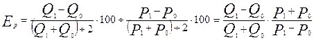 где Q0 и Q1 — величина спроса до и после изменения цены, шт. Аналогично для определения процентного изменения цены ∆P выбранном интервале получаем: