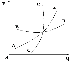 где Q0 и Q1 — предложение до и после изменения цены; Р0 и Р1 — цены до и после изменения; «s» в индексе означает эластичность предложения. Предложение, поскольку оно связано с изменением производственного процесса, медленнее адаптируется к изменению цены, чем спрос. Поэтому фактор времени является важнейшим в определении показателя эластичности. Обычно при оценке эластичности предложения рассматриваются три временных периода: краткосрочный, среднесрочный и долгосрочный. Под краткосрочным понимается период, слишком короткий для осуществления каких-либо изменений в объеме выпускаемой продукции. Например, садовод, вырастивший яблоки и приехавший на рынок их продавать, не может изменить количество предлагаемых им яблок, какая бы ни сложилась рыночная цена. В этом случае предложение является неэластичным. Среднесрочный период достаточен для расширения или сокращения производства на уже существующих производственных мощностях, но недостаточен для введения новых мощностей. Эластичность предложения в этом случае повышается. Долгосрочный период предполагает расширение или сокращение фирмой своих производственных мощностей, а также приток новых фирм в отрасль при расширении спроса на данную продукцию или уход из нее при сокращении последнего. Эластичность предложения будет выше, чем в двух предыдущих случаях. Ценовая эластичность предложения выступает как прямая линейная зависимость между экономическими переменными, показывающими процентное изменение цен и объема предлагаемых к продаже товаров. Эти зависимости обусловливают положение кривых эластичности предложения, изображенных на графике (рис. 4).