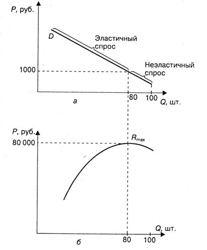Приведенные данные характерны для экономики США. Для России показатели ценовой эластичности рыночного спроса будут несколько иными в зависимости от наличия товаров-заменителей и других обстоятельств, о которых говорилось выше. Для фирмы важно иметь в виду, что эластичность спроса на ее продукцию и эластичность рыночного спроса не совпадают. Первая всегда (за исключением абсолютной монополии фирмы на рынке) выше второй. Рассчитать ценовую эластичность спроса на продукцию фирмы достаточно сложно, так как необходимо принимать во внимание и реакцию конкурентов на повышение или понижение фирмой цены. Помочь в этом может использование математических моделей или опыт руководителей фирмы. Если фирма при принятии решения о цене будет руководствоваться только данными об эластичности рыночного спроса, то потери сбыта от повышения цен могут стать более значительными, чем ожидались. Например, если примем эластичность рыночного спроса на табачные изделия 0,46, то это совершенно не означает, что эластичность спроса на сигареты фабрики «Ява» или «Дукат» будет иметь то же значение. Конкуренция повысит коэффициент эластичности спроса на сигареты каждой из этих фабрик [Л9, с. 76]. Эластичность спроса является важным фактором, влияющим на ценовую политику фирмы. Предположим, что какая-то фирма построила стоквартирный дом и решает вопрос, по какой цене следует предлагать квартиры съемщикам. Расходы на строительство и эксплуатацию фактически не зависят от того, сколько квартир будет сдано (за исключением расходов на текущий ремонт, которые составляют небольшую долю от общих расходов). Если фирма знает спрос на квартиры и его эластичность, она может определить, по какой цене следует сдавать эти квартиры, чтобы обеспечить максимальную выручку. При этом максимальная выручка может достигаться даже в том случае, если часть квартир останется пустовать. Проиллюстрируем это графически. Допустим, что фирма столкнулась с линейной кривой спроса, как это показано на рис. 5. При арендной плате 1 тыс. руб. в месяц ценовая эластичность спроса равна единице и сумма поступлений от аренды наибольшая. Однако, как видно из рис. 5, по этой цене может быть сдано только 80 квартир, а не 100. Если же фирма установит арендную плату ниже 1 тыс. руб., она может сдать оставшиеся 20 квартир, однако ее выручка при этом сократится [Л1, с. 197].