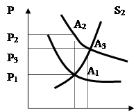![]() ![]() ![]() В краткосрочном периоде предприятия всё же сумеют отреагировать на повышение спроса благодаря изменению своих факторов производства (переменных издержек) и увеличат предложение. Но пока ещё нет достаточного времени, чтобы на повышение предложения подключить постоянные факторы производства, тем более для того, чтобы другие предприятия переключились на производства товара повышенного спроса. Совершенно очевидно, что предложение увеличится до A3, а кривая его наклонится вправо и примет более или менее знакомый вид. Цена P опустится от P2 и установится на уровне P3. Ээластичность предложения выросла. В долгосрочном периоде предложение полностью отреагировало на повышение спроса за счёт подключения в производство постоянных факторов производства и переключения какой-то части других предприятий на производство товара повышенного спроса. Здесь уже производство выросло до Q4 , цена упала до P4 и по существу восстановилось равновесие, но на более высоком уровне потребления. Очевидно, что эластичность связана со временем: она возрастает с увеличением периода времени. А цена равновесия самая высокая при мгновенном периоде – P2 и становится самой низкой в долгосрочном периоде – P4 , следовательно, эластичность есть величина, обратная цене равновесия. С повышением эластичности (с учётом фактора времени) цена равновесия падает. Кроме показателей эластичности по цене рассчитываются также перекрёстная эластичность спроса и эластичность спроса по доходу. В анализе эластичности споса по его факторам необходимо выделить такой неожиданный фактор как изменение цены другого товара. Да, изменение цены другого товара может сильно повлиять на спрос на данный товар. В этом случае возникает перекрёстная эластичность. Таким образом, перекрёстная эластичность представляет собой отношение величины изменения спроса одного товара в процентах к изменению цены другого товара тоже в процентах. Если товары А и Б являются субститутами, то коэффициент перекрёстной эластичности будет положительным, если же они комплементарны – коэффициент будет отрицательным (меньше нуля). Эластичность спроса по доходу отражает изменение спроса на товар, вызванное изменением дохода. Если коэффициент спроса по доходу больше 1, то данный товар относится к категории нормальных. Если меньше 1, т.е. рост доходов ведёт к сокращению спроса на товар, то он относится к низким товарам. Эластичность помогает производителю правильно, научно обоснованно выбирать тактику и стратегию ценообразования на свой товар и гибко лавировать в условиях быстроменяющийся рыночной конъюктуры. Список использованной литературы: 1. Власова В. М. «Основы предпринимательской деятельности»:- М.; Финансы и статистика, 1994. 2. Сатина М. А., Чибриков Г. Г. Экономическая теория. Учебник для ВУЗов.- М.: Издательство НОРМА, 2001. 3. Чипурин, Киселёва. Курс экономической теории. Учебник для ВУЗов.- М., 2000 г. 4. Розенблат С.. Боннингтон Р.. Нидлс Б.. Концепция бизнеса. Рыночная экономика.- М.: Соминтек, 1992 г. |