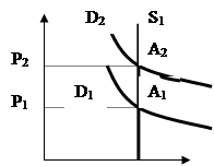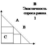 a) Площадь прямоугольника PAACPB – проигрыш от снижения цены (PA- PB) – меньше площади прямоугольника CBQBQA отнимем площадь PAACPB, то получим величину чистого выигрыша от снижения цены. Снижение цен – выгодно. b) Площадь прямоугольника PAACPB – проигрыш от снижения цены (PA-PB)- больше площади прямоугольника CBQBQA. Если от площади PAACPB отнимем площадь CBQBQA, то получим величину проигрыша от снижения цены. В этом случае цены лучше не снижать. c) В третьем случае лучше сохранить статус-кво, сложившееся положение вещей на рынке. Во всех трёх случаях отчётливо видна разница в крутизне падения кривой спроса D (более полого – менее полого). Однако на рынке существуют товары, спрос на которые совершенно (абсолютно) неэластичен или, наоборот, эластичен. Первый случай характеризуется восходящей параллельно оси ординат P кривой (прямой) спроса D. Например, хлеб, соль, лекарства. Товары, без которых при любой их цене не обойтись.