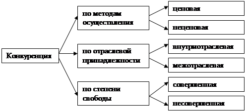 Ценовая конкуренция предполагает продажу товаров по более низким ценам, чем у конкурентов. Снижение цены теоретически возможно либо за счет снижения издержек производства, либо за счет уменьшения прибыли. Мелкие и средние фирмы, чтобы удержаться на рынке, часто соглашаются на небольшую прибыль. Крупные предприятия могут себе позволить на некоторое время вообще отказаться от получения прибыли, чтобы с помощью дешевой продукции разорить конкурентов и вытеснить их с рынка. Такой метод вытеснения конкурентов с рынка (метод конкурентной борьбы) известен также под названием «война цен». В свое время американская монополия «Кока-Кола» применила его при вторжении на рынки стран Латинской Америки, позднее таким же образом японские фирмы продвигали свои товары в США и Западную Европу. В последнее время снова возродился интерес к ценовой конкуренции в связи с внедрением технологий, позволяющих экономить ресурсы и, следовательно, снижать себестоимость. Неценовая конкуренция основана на предложении товаров более высокого качества, с большей надежностью и сроками службы, на использовании методов рекламы и других способов стимулирования сбыта. По отраслевой принадлежности различают внутри- и межотраслевую конкуренцию. Внутриотраслевая конкуренция — конкуренция между предпринимателями, производящими однородные товары, за лучшие условия производства и сбыта, за получение сверхприбыли. Межотраслевая конкуренция — это конкуренция между предпринимателями, занятыми в различных отраслях производства, из-за выгодного приложения капитала, перераспределения прибыли. Поскольку на норму прибыли влияют разные объективные факторы, ее величина в различных отраслях различна. Однако каждый предприниматель независимо от того, где применяется его капитал, стремится получить на него прибыль не меньшую, чем остальные предприниматели. Это приводит к переливу капиталов из одних отраслей в другие: из отраслей с низкой нормой прибыли в отрасли с высокой. Конкуренцию также подразделяют на совершенную (свободную) и несовершенную (монополистическую). Для совершенной конкуренции характерна свобода от какой бы то ни было регламентации: свободный доступ к факторам производства, свободное ценообразование и др. При этой конкуренции никто из участников рынка не может оказать решающего влияния на условия реализации товаров. Монополистическая конкуренция отличается главным образом тем, что монополии имеют возможности влиять на условия реализации товаров. Подробнее эти два вида конкуренции будут рассмотрены в следующих главах. II. Модели рынковВзаимодействие между продавцами и покупателями, выступающими предъявителями предложения и спроса, происходит на рынке. Решения продавцов и покупателей относительно цены, объемов производства, закупок товара будут существенно различаться для разных типов (моделей) рынка. Вообще говоря, в зависимости от целей экономического исследования могут быть различные классификации рыночных структур. По степени развития конкуренции экономическая теория выделяет четыре основные модели рынка (в экономической литературе их также называют видами рыночных структур): 1. совершенная (чистая) конкуренция 2. 3. олигополия 4. монополия На рынке совершенной конкуренции расщепление экономической власти максимально и мех