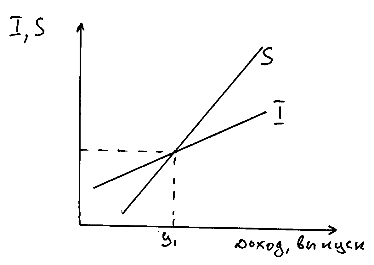Модель – инвестиции и сбережения ( модель “изъятия – иньекции») (I – S). Условием достижения равновесия данной модели это равенство инвестируемых сбережений и кредитуемых инвестиций. Модель показывает колебания равновесного ВНП при условиях, если S>I; S