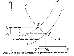Сформировавшееся на рынках равновесие цен по различным причинам может регулироваться вмешательством в действие законов спроса и предложения. При этом в одних случаях такие регулирующие вмешательства нарушают механизм конкурентного ценообразования, а в других – такого нарушения не происходит. Предположим, что государство устанавливает цену товара ниже равновесной, возникает стабильный дефицит товара. Предположим, что введен новый налог на производителей, это вызовет сдвиг кривой производителя. При этом равновесная цена увеличится. Рост цены произойдет частично за счет сокращения производства, частично за переложение налогового бремени на потребителя. Налог выступает одним из рычагов регулирования рыночной системы, но такое регулирование не нарушает законов формирования равновесной цены по законам спроса и предложения. Налогообложение продаж При уже сформировавшемся спросе всякое повышение цены (вследствие налога) вызывает эффект сокращения покупок подорожавших товаров. Производители отреагируют на такую ситуацию сокращением производства товаров, поскольку спрос на них снизился. Как видно, нарушения законов спроса и предложения не произошло, но налог создал необходимость перемещения точки ценового равновесия на более высокий уровень. При сформировавшемся спросе налогообложение сместит кривую предложения влево, вследствие чего равновесная цена установиться в новой точке пересечения с кривой спроса на более высоком уровне.