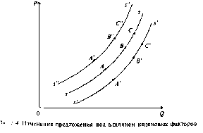 Данный рисунок обозначает влияние ценового фактора на предложение. Существуют неценовые факторы, влияющие на предложение (графически отображают сдвигом самой линии предложения: