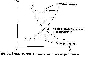 Под равновесной ценой – понимается цена, по которой потребитель желает купить, а товаропроизводитель желает продать одно и то же количество товаров Q = E. При изменении спроса и предложения происходит изменение рыночного равновесия, которое первоначально выражается в виде не равновесия на рынке. Однако рыночный механизм имеет особенность, что в результате свободного колебания спроса и предложения устанавливается рыночное равновесие.