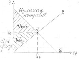 Тема 7. Вмешательство государства в ценовую ситуацию на рынке и влияние его на выигрыш производителя и выигрыш потребителя 1. Понятие излишка производителя и излишка потребителя. 2. Изменение излишков производителя и потребителя при контроле над ценами со стороны государства. 3. Влияние налогов и дотаций на цены и излишки потребителя и производителя. 4. Государственное регулирование цен в странах с рыночной экономикой. Действующие лица: государство, производитель, потребитель. 1. Понятие излишка производителя и излишка потребителя. Излишки производителя Wпр (WS) − прибыль (разница между выручкой и затратами. Излишки потребителя
