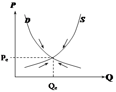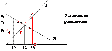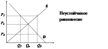 Равновесие неустойчиво, с взрывными колебаниями цены, если эластичность спроса меньше эластичности предложения. Кривая спроса более крутая, чем кривая предложения.