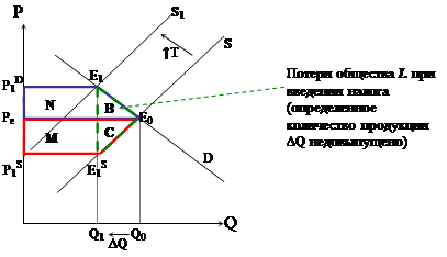 Влияние потоварного налога на излишки производителей и потребителей