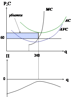 Фирма будет работать до тех пор, когда Р=AVC. Тогда фирма примет решение об уходе с рынка. Условие прекращения производства товара