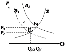 P1 − цена, которую назначило государство, оно понизило Pe. Выигрыш потребителя