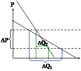 В точке В: берем dP и dQ, P и Q в точке В. Эластичность разная!!! Эластичность определяется по формуле (*) только в конкретной точке. Но эластичность в различных точках тоже разная. Поэтому используют дуговую эластичность.